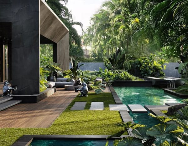 طراحی و اجرای فضاهای سبز و محوطه بیرونی ویلا، شامل کاشت گیاهان، طراحی مسیرها، ایجاد فضاهای نشیمن، و نورپردازی